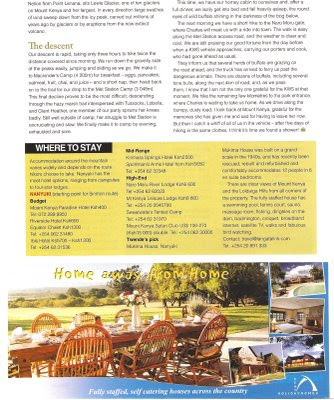 below are pages from an article i had published in Twende, an East African travel mag. i wasn't too happy with the article, which i rushed through after getting home in december, but the pictures turned out really well. our guide, who had hiked the mountain a couple dozen times over the past several years, said that it was the clearest weather he had ever seen on the peak. we could just glimpse the tanzanian twins, Kilimanjaro and Mt. Meru, above the clouds in the distance. spectacular.